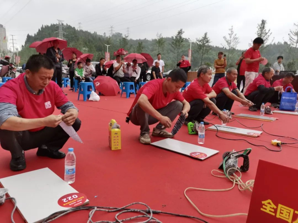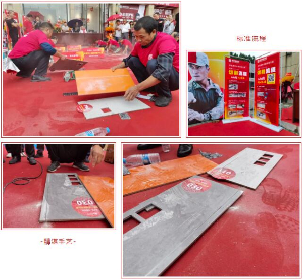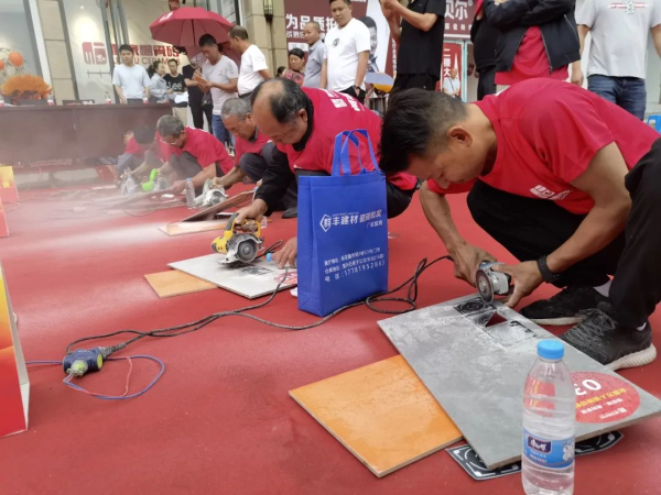活動現場比賽氛圍異常火爆,經過激烈角逐,白冰師傅高分斬獲達州站瓷磚切割PK賽冠軍,他的精湛手藝獲得評委及現場比賽選手的一致好評,憑借精湛技術,斬獲粉絲無數。