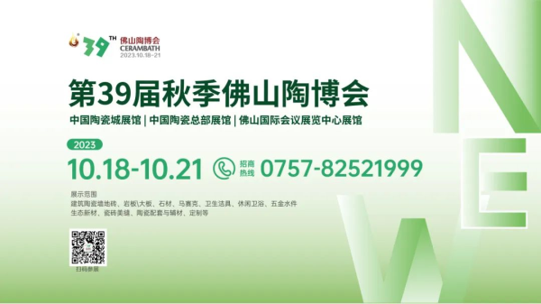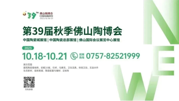 2023年10月18-21日,第39屆秋季佛山陶博會將在中國陶瓷城、中國陶瓷總部、佛山國際會議展覽中心三館同期舉辦。本屆展會以“見新”為主題,將匯聚更多進口、高端、新銳、特色的品牌與產品,展示最新趨勢與方向。