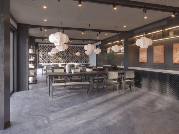 設計靈感源于約旦的月亮谷,行云流水的細膩肌理動感流暢,高級的深灰遇見神秘的石材肌理,便有了優雅靜謐的月亮谷。