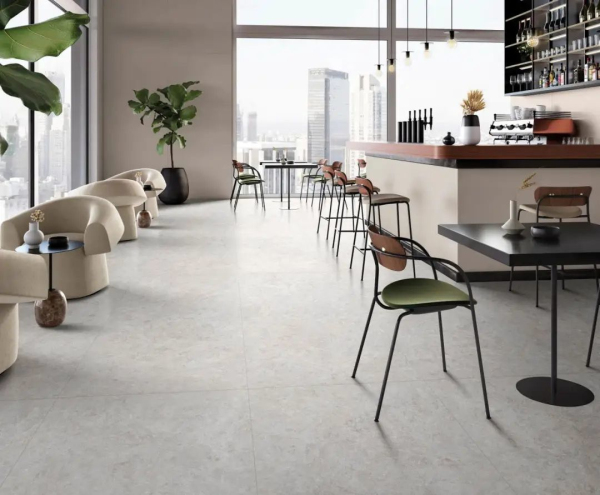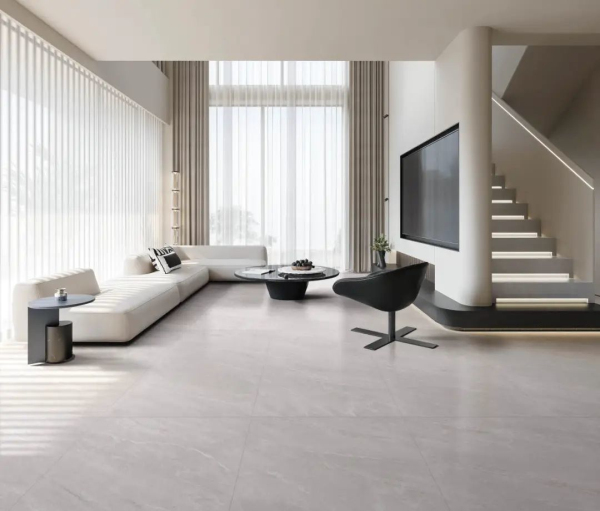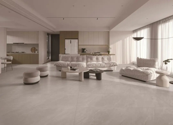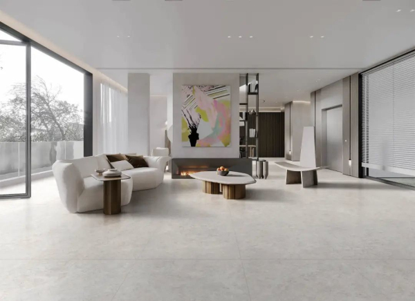 · 自然光感:還原天然石材表面自帶15°微光光感,遠觀整體素凈雅致,近看紋理流動延伸,視覺自然舒適,恬靜美好,比普通亮面磚更柔和更護眼。