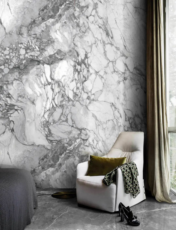 擁有鏡面、亮光、柔光、絨面、啞光等不同質感、不同規格的大理石瓷磚產品,在無限連紋、一石多工藝、歐標微縫鋪貼技術支持下,營造更好的裝飾效果。