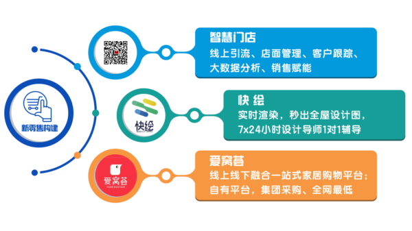 智慧門店管理系統、快繪設計軟件、愛窩薈家居購物平臺三大營銷利器之中,智慧門店涵蓋線上引流、店面管理、客戶跟蹤、大數據分析等功能,最大程度為銷售賦能;快繪可實時渲染,秒出全屋設計圖,并具有7×24小時設計導師1對1輔導支持,讓消費者所見即所得;愛窩薈作為品牌自有平臺,是線上線下融合的一站式家居購物平臺,可通過集團集中采購獲得全網價格最低的家居用品。這三大技術軟件極大地提高了成單率,賦能經銷商客戶實現持續盈利。