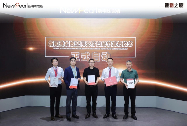 在中國陶瓷網總經理劉石、新明珠集團明珠科筑總經理賈世廣、新明珠巖板總經理唐楚雄、杭州協宇建材有限公司胡昌強和新明珠巖板副總經理李鑫的共同見證下,新明珠巖板空間交付白皮書發布儀式圓滿舉行。