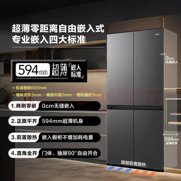 從美學(xué)體驗上看,在同樣是雙十一“主戰(zhàn)場”的京東平臺,海爾和景冰箱憑借594mm專業(yè)超薄零嵌科技突出重圍,穩(wěn)居榜單TOP1。相較于普通超薄零嵌冰箱按照600mm櫥柜標(biāo)準(zhǔn)做尺寸,海爾冰箱率先發(fā)現(xiàn)3mm 墻體偏差、2mm 噪音共振及 1mm 櫥柜偏差,預(yù)留出總計 6mm 的科學(xué)偏差,實現(xiàn)“正面平齊、兩側(cè)零嵌”完美融合,并且嵌裝科技獲得了國際權(quán)威機(jī)構(gòu)UL的行業(yè)唯一認(rèn)證,解決了用戶長期以來“嵌入冰箱開關(guān)門磕碰”等問題。