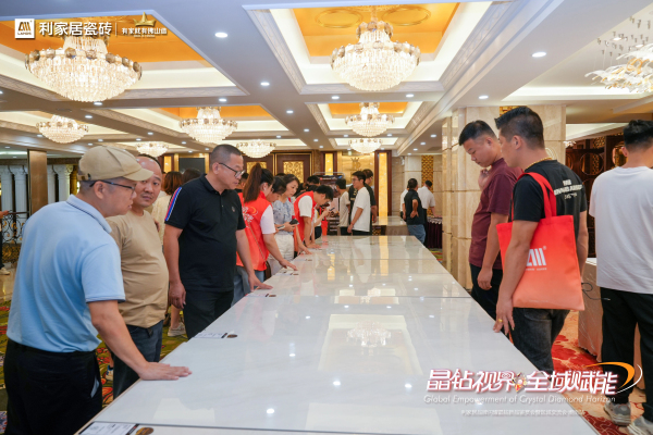 對于終端門店而言,僅擁有優質產品遠遠不夠,卓越的服務以及品牌知名度的提升同樣不可或缺,如此方能在當地市場站穩腳跟。利家居瓷磚借助品牌區域交流會的寶貴契機,帶領一眾經銷商前往潮南當地專賣店,親身感受品牌魅力。通過直觀的視覺呈現、井然有序的空間陳列以及豐富全面的產品系列,全方位詮釋品牌形象。