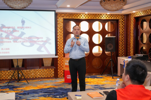會議伊始,由利家居汕頭經銷商康澤彬率先致辭。他對品牌總部領導的蒞臨表示誠摯感謝,同時高度贊揚了品牌總部對終端賦能工作的重視。他期望能與在場的各位經銷商伙伴開展深度交流,彼此分享門店經營的心得與經驗,相互交流學習,共同進步。