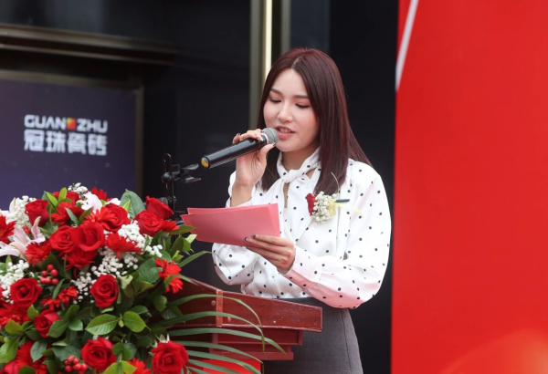 曹建材商貿有限公司副總經理海翼向所有到場的嘉賓領導表示熱烈的歡迎和誠摯的感謝,并發表致辭。她提到,作為冠珠瓷磚優秀經銷商代表之一,宜賓冠珠的盛裝開業,是與品牌深化戰略合作、共拓市場版圖的又一重要里程碑,期待與合作伙伴們繼續攜手同行,為宜賓當地消費者帶來更多高品質家居體驗。
