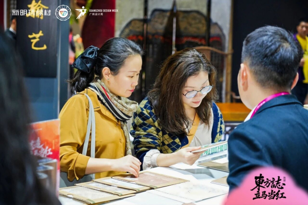 「東方誌」展館由佛山市設計聯合會與廣州設計周共同發起,特邀新明珠綠材等品牌參與共創,以獨特的東方美學表達和沉浸式體驗設計,迅速成為設計周的熱門打卡地。