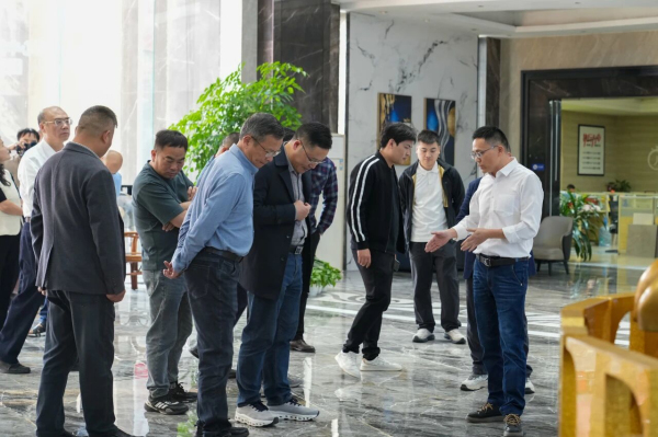 能強集團董事長梁勝遠、集團總經理羅昶、集團戰略部總經理梁浩堂、能強品牌副總經理李春寬及本次考察的牽頭人廣東能強陶瓷福建分公司負責人,廈門春欣帆貿易有限公司董事長周志春陪同接待,共話發展。此次考察旨在加強對能強瓷磚生產實力、產品質量及工程實力等方面的了解,從而深化交流,促進雙方達成戰略合作。