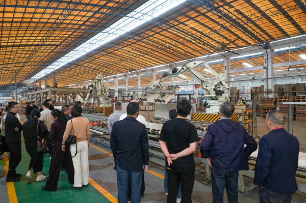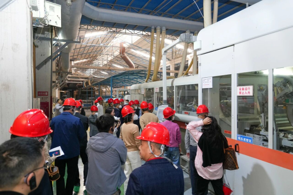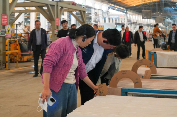 在肇慶智能工廠,考察團近距離參觀考察了意大利薩克米巖板整線、大噸位壓機及全溫控窯爐等高度智能化生產線的運行,從精準的原料配比到高效的成品輸出,充分感受到“匠心智造·中國能強”的硬核實力。