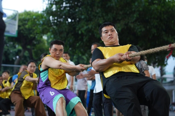 “一二、一二!”整齊的口號聲中,雙方隊員緊握長繩、全力以赴。拔河不僅是力量的對抗,更是意志與團結的考驗。