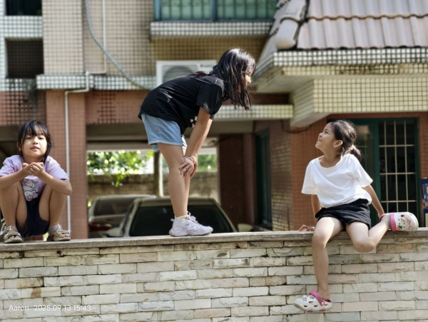《墻頭上的童年嬉語》馮冬/攝