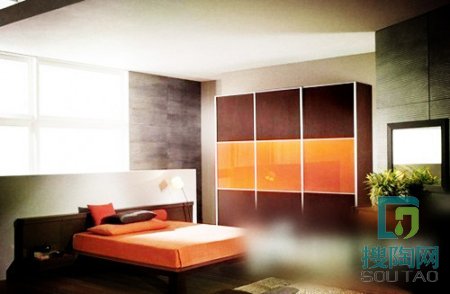 以橙紅色與黑色的搭配為主旋律的臥室,沒有滿眼紅色的俗氣,倒是多許多的高檔大氣。為了突出顏色的純粹搭配,在墻壁和地板上盡量選用簡單樸素的顏色。而在臥室家具上則加入主題色。如衣柜就選用了亞克力板材質,打造出光亮時尚的黑、紅。若隱若現的反光面也更加顯示了活力。