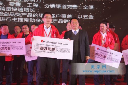 東鵬潔具副總經理林赤峰(中)為得獎者頒發“廣告達量獎”