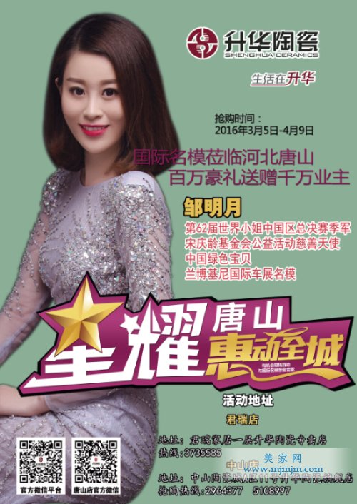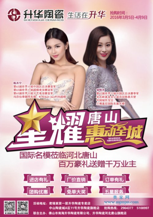 升華陶瓷攜手國際名模4月9日空降唐山,讓您實惠拿到眉開眼笑!