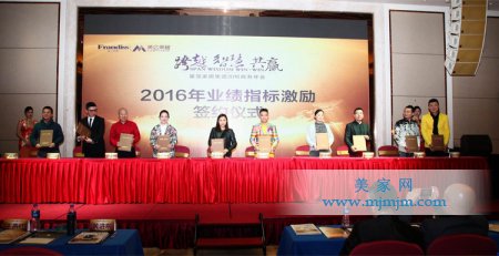 在下午的經銷商會議上,富寶家居集團黃進東先生做了 “跨越•智慧•共贏”為主題的戰略報告。對新常態下市場發生的變化,進行了深刻解剖,并站在經銷商與客戶方角度詳細解析了富寶家居集團2016年的營銷與服務工作。不僅如此,會議上,公司對本次名家具展推出的美侖美居品牌定制新品,進行了細致的市場分析,總結了定制新品的獨特賣點,現場展示了定制新品的個性化終端服務模式。新思維、新工具、新模式,吸引了現場眾多經銷商的商業眼球,現場簽下幾十個城市的加盟合同。信心決定未來,會議現場,富寶家居集團與現有經銷商舉行了業績激勵簽約儀式,所有經銷商都滿懷信心的在業績激勵協議書上簽下了神圣的名字,大家都對2016年的業績增長目標充滿信心。
