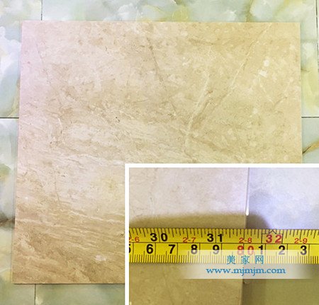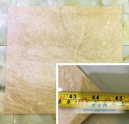 小編拿來卷尺測量了此款瓷磚的規格,測量結果:邊長800mm,對角線長113.1mm,與商家給出的尺寸相符。尺寸數據與實際測量數據相符,說明金璞陶瓷磚的工藝很嚴謹,保證原材料的均勻性及細膩程度。