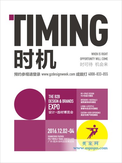 12月2—4日,2016廣州設計周將在廣州琶洲保利世貿博覽館啟幕。經過11年的積淀,2016廣州設計周即將從“心”出發。順應“時機TIMING”這一主題,今年的廣州設計周從展商規模、展品數量、展品質量、特邀大咖、參與嘉賓、主題活動、參觀人數、合作媒體都創歷史新高。做為中國設計年度大戲的收官站,你在廣州設計周看到的不僅僅是目前中國規模最大、參與人數最多、影響力最廣、國際化程度最高的“設計+選材”博覽會,還能滿足你“找設計、選材料、看家居、探趨勢、尋商機、謀圈子”等一切營商需求。