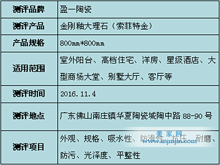 【測評總結】據了解到,這款金剛釉大理石(索菲特金)每一款產品均以真正頂級石材印模板打做,紋理清晰、層次分明,有別于目前市場上的用現有文件噴墨打印的大理石。在測評過程中也以優異的表現順利通過,金剛釉大理石(索菲特金),你值得擁有!