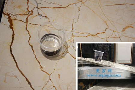 陶瓷瓷磚的吸水率如果過高,就會容易滲入液體,在貼磚的時候容易把水泥中的水從后吸進去,進入釉面從而產生印跡。接下來看看這款瓷磚的吸水性怎么樣,可以看到,現場測評員在瓷磚背面畫了個圈,并往圈內倒點水,靜待一會發現水并沒有向圈外擴散的現象,然后再放了張紙巾,此時圈內的水立即被紙巾洗掉,實驗證明,這款瓷磚吸水率低,是一款不易吸水的瓷磚。