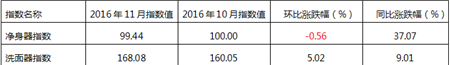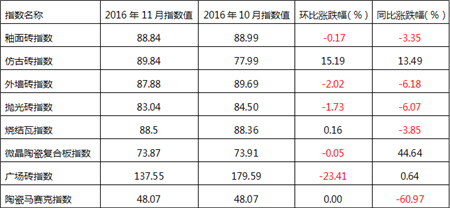 表一:2016年(1-11月)佛山陶瓷價格指數(shù)走勢