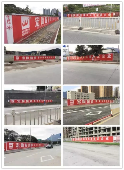 宏陶陶瓷抓住了墻體廣告這爭奪農村市場中重要的一環,經過春節時間的醞釀,現已在全國各地遍地開花,特別是在福建地區,宏陶陶瓷的墻體廣告已頗具規模,隨處可見。宏陶陶瓷以接地氣的文案,狂拽炫酷的姿勢,42幅廣告的大手筆,席卷福安、涵江、惠安、連江、寧德、仙游地區。