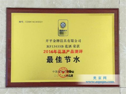 1月12日,由中國建筑裝飾協會主辦,中國建筑裝飾協會廚衛工程委員會、中國建筑衛生陶瓷協會衛浴分會承辦的 2016 衛生潔具坐便器、廚衛水龍頭、花灑產品測評調研活動結果在“第五屆中國房地產企業經營管理創新大會暨中國房地產園區產業聯盟高峰論壇”晚宴中揭曉并舉辦頒獎儀式。金牌衛浴恒溫花灑RF13035B憑著其強大的綜合實力,榮獲“最佳節水獎”。
