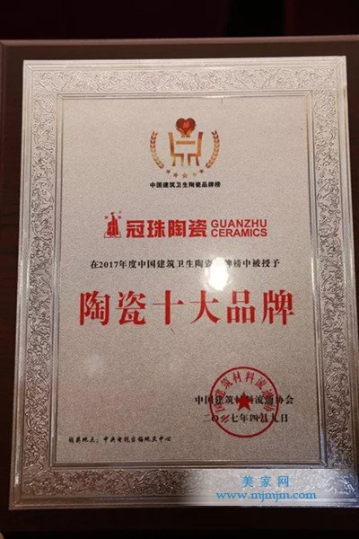 4月9日,“行業(yè)兩會 品牌盛典”2017中國建筑衛(wèi)生陶瓷品牌大會暨全國陶瓷/衛(wèi)浴經(jīng)銷商大會在北京中央電視臺梅地亞中心演播大廳舉行會議,冠珠陶瓷在2017年度中國建筑衛(wèi)生陶瓷品牌榜中喜獲“陶瓷十大品牌”殊榮。