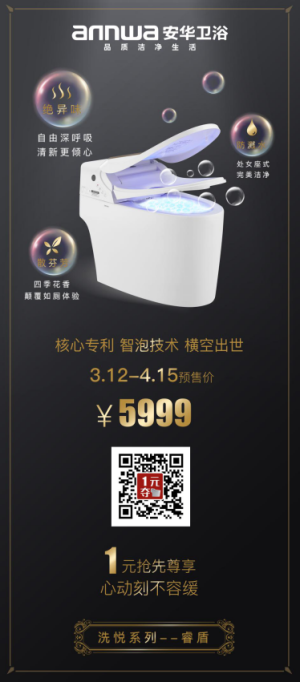 安華衛浴洗悅系列“睿盾”,核心專利智泡技術,獨特的致密泡沫,有效隔絕異味、防濺水,可選薰衣草、檸檬、桂花、玫瑰四種芳香隔層,顛覆如廁體驗——這么完美的馬桶,你怎么忍心錯過?