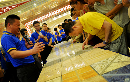 活動(dòng)中,金尊玉大理石瓷磚董事長(zhǎng)南順芝表示,作為新一代陶瓷人,我們要勇于創(chuàng)新,但不是盲目的創(chuàng)新,而是要圍繞大理石這個(gè)基本面進(jìn)行創(chuàng)新;在產(chǎn)品方面,要做到極致和專(zhuān)注。在未來(lái),金尊玉將集合公司所有資源打造自己的“招牌菜”,那就是全真大理石瓷磚。全真大理石瓷磚解決了行業(yè)“形象神不像”的問(wèn)題,產(chǎn)品采取了6至12道絲網(wǎng)疊加噴墨技術(shù)和干法4道6色系統(tǒng)。原料方面,采用國(guó)際先進(jìn)的意大利卡羅比亞進(jìn)口釉料,西班牙意達(dá)加色料。在耐磨度上,全真大理石瓷磚從2100轉(zhuǎn)提升到了6000轉(zhuǎn)。“表里如一是一種境界,全真技術(shù)是一種追求,金尊玉全真大理石瓷磚在大理石的基礎(chǔ)上將革命性的顛覆傳統(tǒng),最終引領(lǐng)大理石行業(yè)全面進(jìn)入全真大理石時(shí)代。”南總說(shuō)