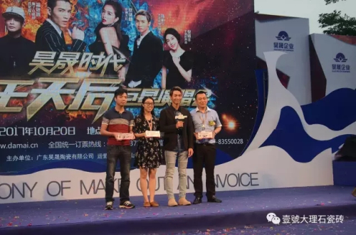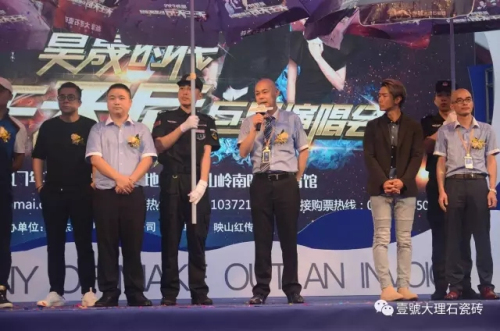 發布會暨開票儀式現場,政府協會部門領導、昊晟企業領導以及來自全國的優秀經銷商、社會各界人士、60多家專業權威媒體共500余人出席盛會。演唱會巨星代表香港新城勁爆歌手陳柏宇親臨現場助陣,將現場活動氛圍推向高潮。出席活動的具體領導嘉賓有:禪城區文化體育局副局長劉芳,中國建筑衛生陶瓷協會副秘書長尹虹,佛山市陶瓷行業協會秘書長羅青,昊晟企業董事長羅文強、副董事長羅妙玲、總經理杜湛權、第一營銷中心總經理朱國亮、新濠大理石瓷磚總經理柯寓國,映山紅傳媒陳華杰,演唱會總導演余子杰等。