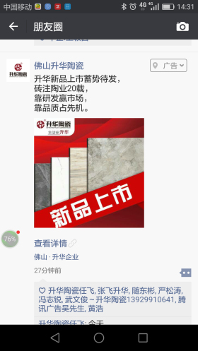 在危機(jī)面前,敢于嘗試,懂得借力,整合資源,才能化危為機(jī)。升華陶瓷此次與騰訊聯(lián)手,充分利用騰訊的大數(shù)據(jù)和資源,為自己的發(fā)展助力,是一個(gè)創(chuàng)舉,也是一個(gè)智舉。每一家企業(yè)對新事物的嘗試,無論成敗,我覺得都是推動(dòng)時(shí)代進(jìn)步,推動(dòng)行業(yè)發(fā)展的一股力量,都應(yīng)該被尊重和贊揚(yáng)。