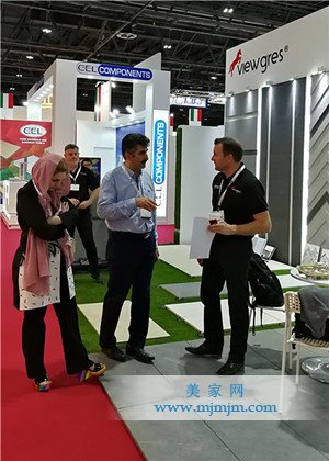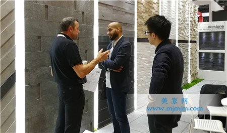 2cm石英磚與天然石材同臺展示,逼真的肌理和質感,令客戶一度以為就是天然石材。而在性能和色彩上,2cm石英磚可實現的效果將更加多樣化。此次借中東石材展這一專業平臺在產品技術及應用層面與國際石材同仁、專業買家進行交流。
