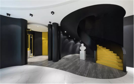 展廳外立面以簡潔黑色為主,與一樓概念館的白色基調形成強烈對比。而展廳結合現代科技與經典元素宛如在不同時空穿梭,由此突出 “因設計而不凡”的品牌定位。