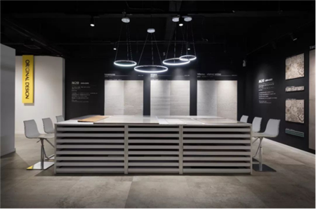 芒果瓷磚作為國際高端家居趨勢瓷磚設計者,將展廳設計融入 “品質、舒適、生活”的理念,具有芒果的獨特的設計符號,把產品的極致設計衍生為空間的獨特應用,為消費者構建出具有設計感,舒適感及時尚感的消費場景體驗。