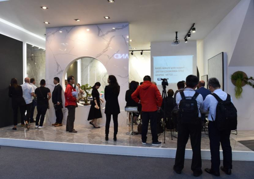值得一提的是,諾貝爾瓷磚在獲得設計大咖青睞的同時,也俘獲了國際客商挑剔的眼光,更有國際客商現場簽訂大單。一家來自韓國的涂料和建材生產龍頭企業應邀前來洽談并初步建立合作意向;來自意大利的客商則在展會現場簽下諾貝爾大板瓷拋磚訂單;來自北美的連鎖建材商,在經過參觀比較后,更是因為看中諾貝爾瓷磚的產品質量和設計感,直接在現場打款簽單。