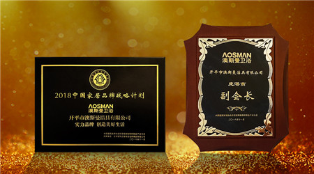 本屆住宅裝飾裝修和部品產業分會成立大會上,澳斯曼衛浴總裁龐湛高先生當選中國建筑裝飾協會住宅裝飾裝修和部品產業分會副會長,同時澳斯曼衛浴還獲得2018中國家居品牌戰略計劃整體衛浴推介品牌榮譽。