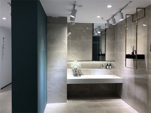 以下四個空間都是現代簡約風格衛生間,都選用了灰色磚進行鋪貼,可見,灰色磚是現代家居的主流產品,很多消費者來我們店看產品都會被灰色磚的模擬間驚艷到,耐看、耐臟、適用范圍廣等優點深受消費者喜愛。
