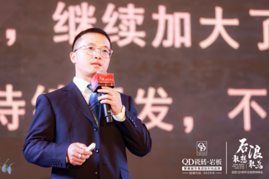 蒙娜麗莎集團(tuán)研發(fā)中心副總經(jīng)理李惠文向在座經(jīng)銷商伙伴解讀當(dāng)前世界家居潮流趨勢(shì),并發(fā)布2021年QD戰(zhàn)略產(chǎn)品巖板及其他系列新品,為QD即將踏上的新征程“保駕護(hù)航”。