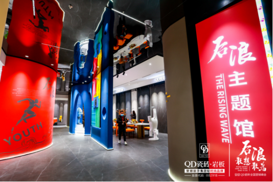 藉著峰會(huì),QD“后浪”主題館的首度亮相,大膽的色彩、弧形、浪花等元素,將QD一直以來所注重的“輕時(shí)尚”生活美學(xué)態(tài)度變現(xiàn)得淋漓盡致。從單片瓷磚到三維的空間展示,開啟展廳設(shè)計(jì)新高度。新概念、新花色、新工藝和新空間展示設(shè)計(jì)方式悉數(shù)呈現(xiàn),為消費(fèi)者提供無界無限的美學(xué)生活靈感,獲得QD經(jīng)銷商家人們的大加贊賞。